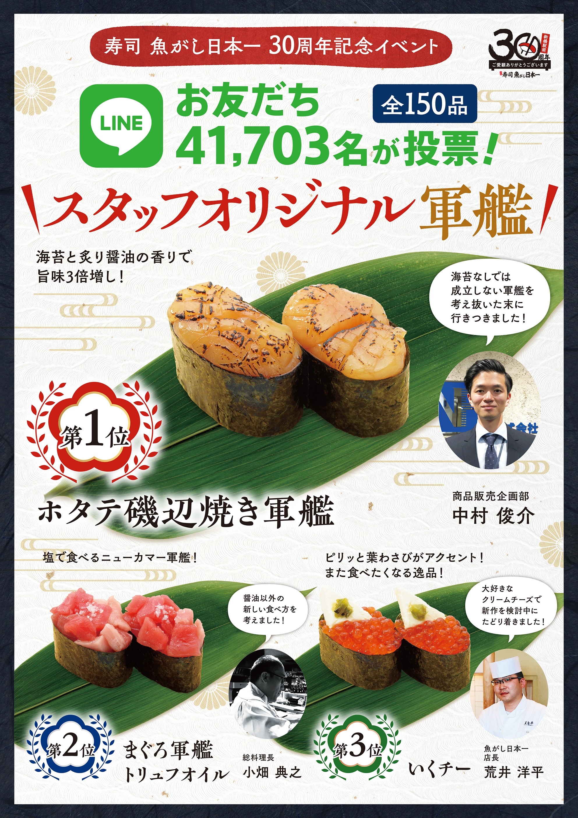魚がし日本一Line会員様41,703名が投票したオリジナル軍艦の頂点に立ったのは!!